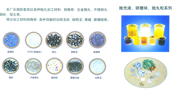 、光飾機、烘干機、清洗機、磨料、磨具、拋光液、磨塊、拋磨塊、磨液等產品的一條龍生產基地。